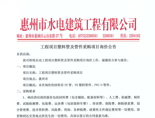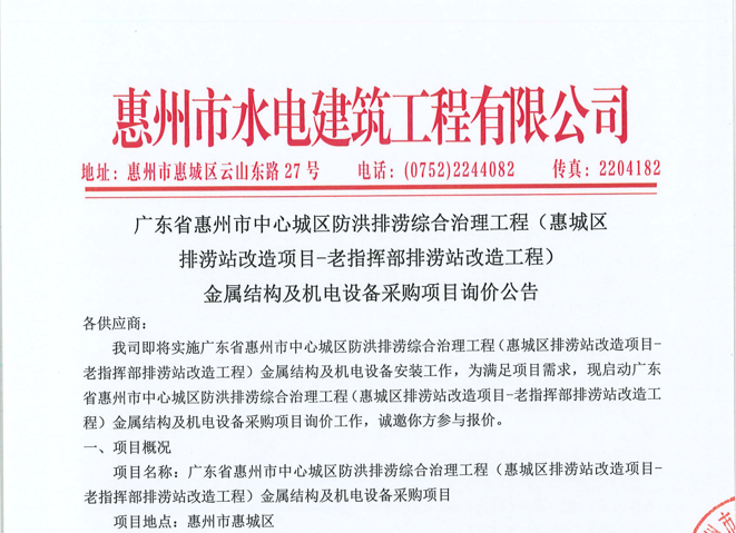 惠州市水電建筑工程有限公司成立于一九六四年四月,隸屬惠州市水務(wù)集團(tuán)有限公司,是一家國(guó)有綜合性施工企業(yè),主營(yíng)水利水電工程、房屋建筑、市政工程等施工業(yè)務(wù)。公司擁有水利水電工程施工總承包一級(jí)、建筑工程施工總承包一級(jí)、市政公用工程施工總承包一級(jí)、公路工程施工總承包三級(jí),公路路基、路面及建筑裝修裝飾專(zhuān)業(yè)承包二級(jí),環(huán)保工程、機(jī)電安裝、河湖整治、輸變電工程專(zhuān)業(yè)承包三級(jí)等經(jīng)營(yíng)資質(zhì)……