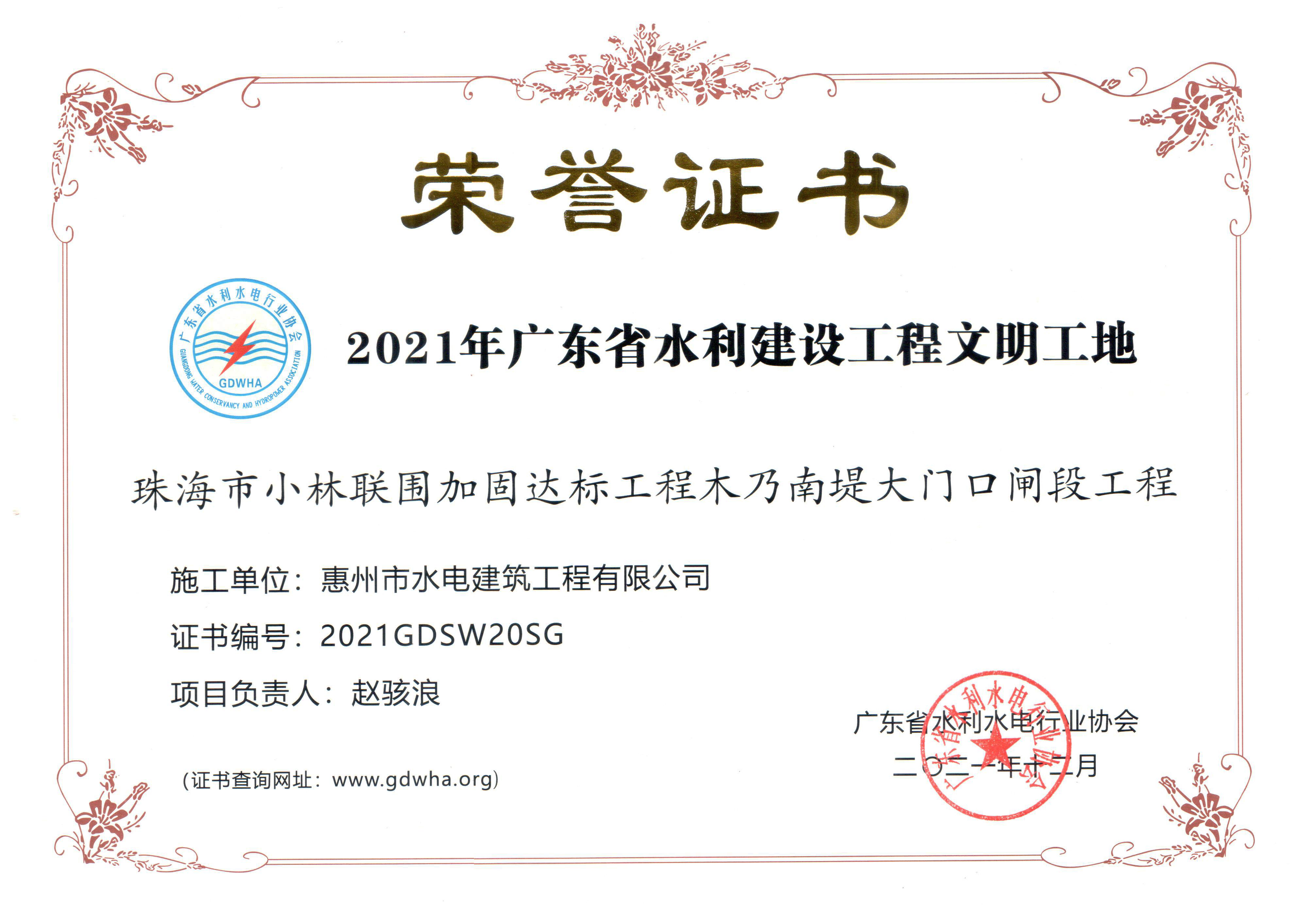 廣東省水利建設(shè)工程文明工地——珠海市小林聯(lián)圍加固達(dá)標(biāo)工程木乃南堤大門口閘段工程