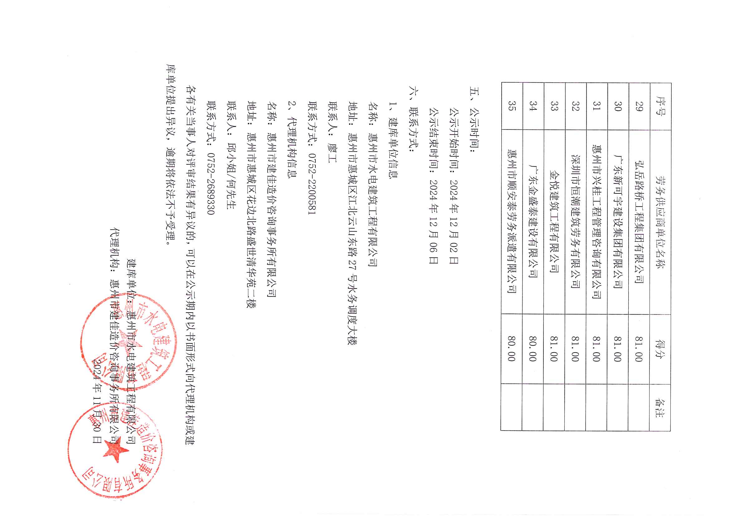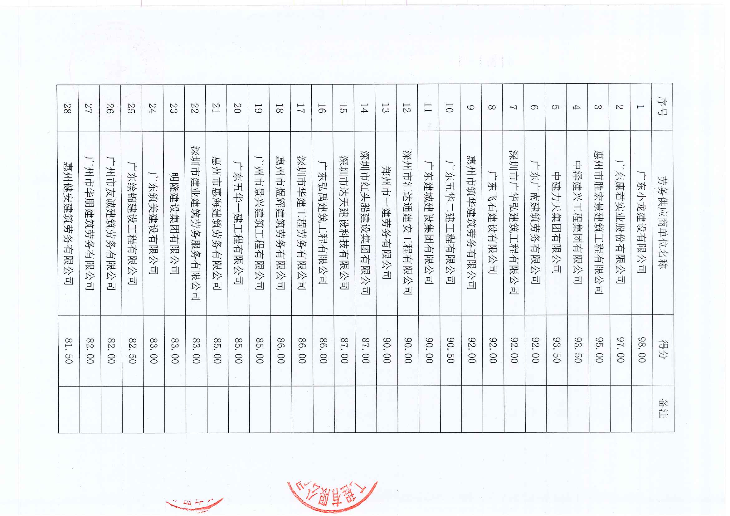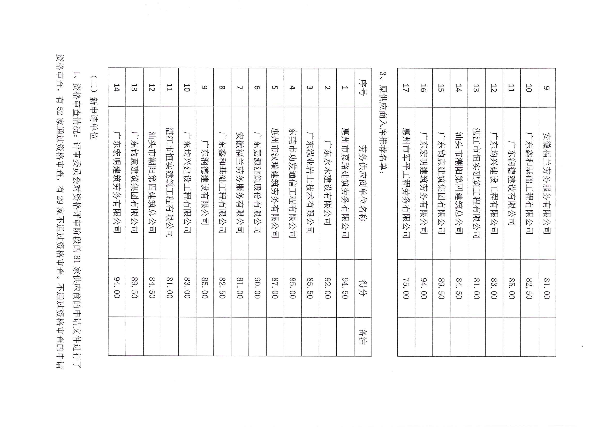 惠州市水電建筑工程有限公司勞務(wù)供應(yīng)商庫擴庫評審結(jié)果公示
