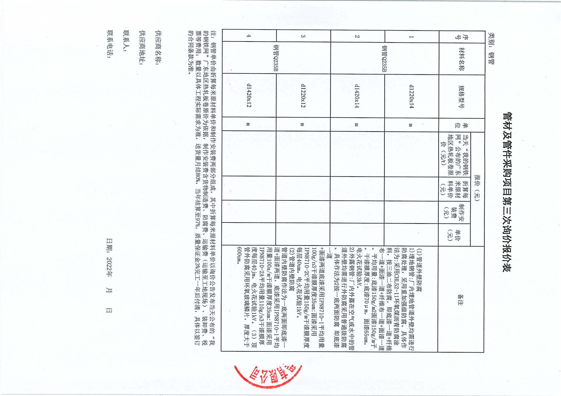 管材及管件采購(gòu)項(xiàng)目第三次詢價(jià)公告