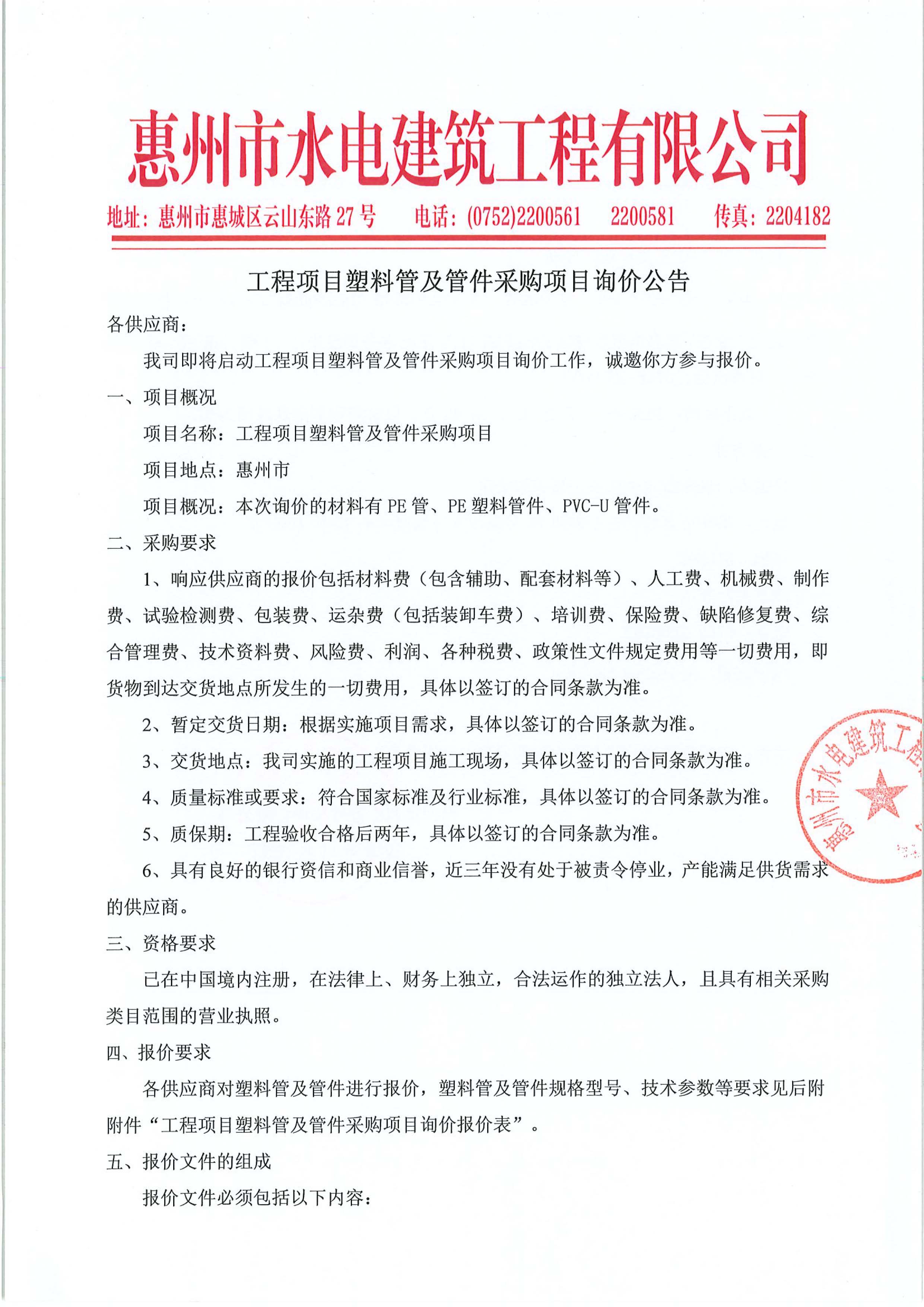 工程項(xiàng)目塑料管及管件采購(gòu)項(xiàng)目詢價(jià)公告附件: